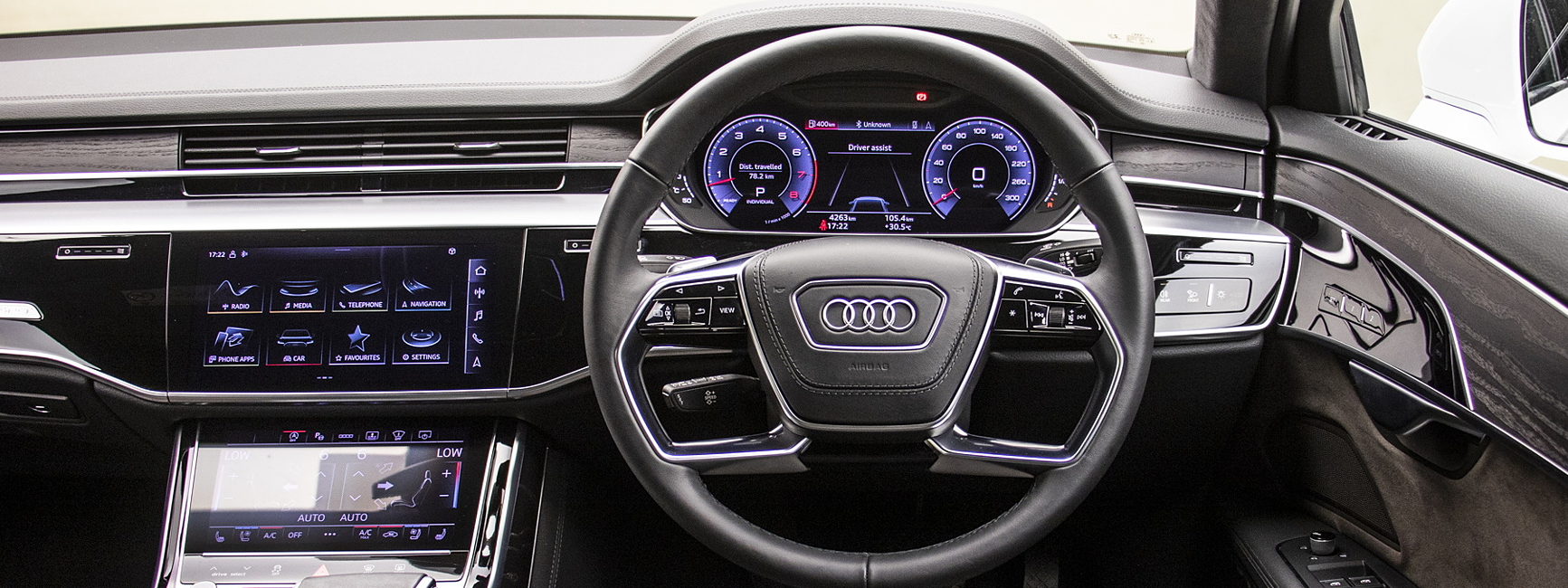Virtual cockpit: The Audi A8 often features a virtual cockpit, which replaces traditional gauges with a customizable digital display that can show important information such as navigation directions and vehicle status.